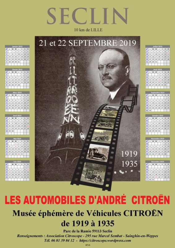 Du 21 au 22 septembre 2019 Centenaire de Citroën 1919-2019. Musée éphémère André Citroën 1919-1935. Tous modèles de Citroën de collection. Concentration auto et moto.