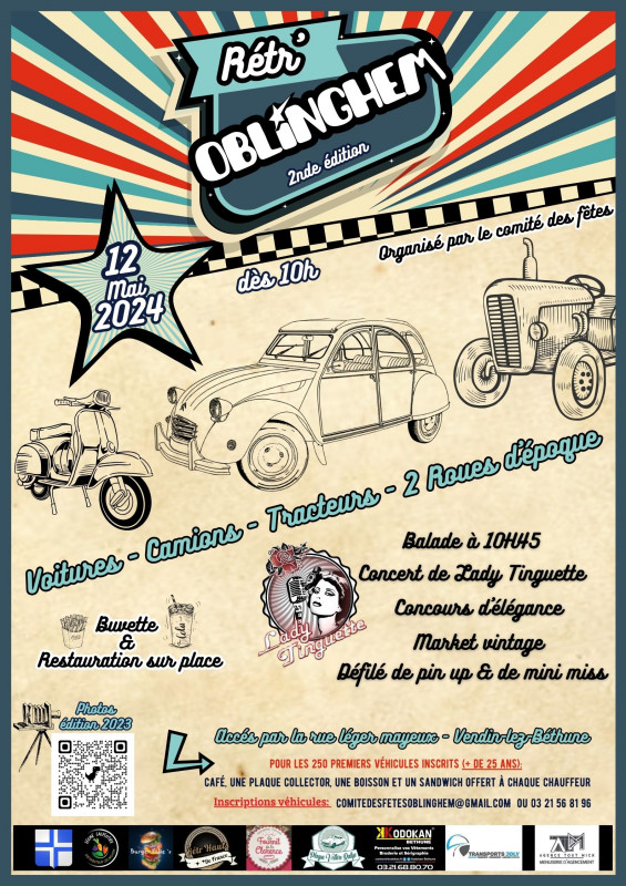 Le comité des fêtes d'Oblinghem (village situé à côté de Béthune) est heureux de vous inviter à son événement: Rétr'Oblinghem 🚗🚜🚲🛵💈🕺🎤📅Le 12 mai 2024 🆕