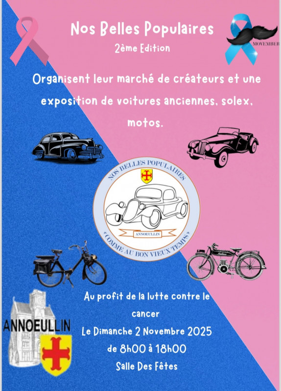 2ème exposition à Annoeullin de véhicules anciens à l'occasion du marché de créateurs organisés par l'association "Nos Belles Populaires" au profit de la lutte contre le cancer.
